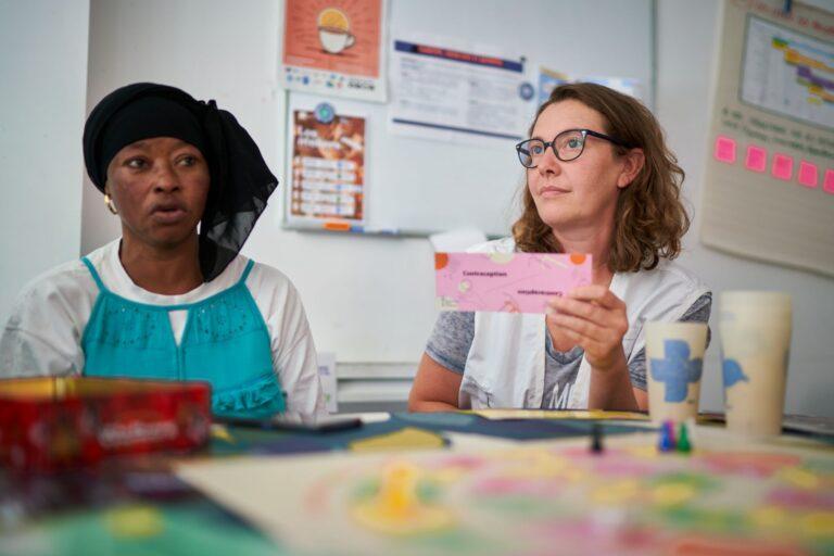 Pour approfondir ces nouvelles problématiques, l’équipe mise sur l’activité centrale du programme 4i : les groupes de parole du mercredi, organisés en non-mixité afin de favoriser un climat de confiance. Ce jour-là, le thème est libre et les huit femmes présentes jouent à un jeu de plateau sur la santé sexuelle et reproductive. Le dé roule sur la table et les questions s’enchaînent : « Le sida est-elle la seule maladie transmissible par voie sexuelle ? » ou « Il est interdit de poser un stérilet à une femme qui n’a pas eu d’enfants : vrai ou faux ? ». Les réponses donnent lieu à d’intenses débats sur les hépatites, les règles ou encore la contraception masculine, sans tabou ni gêne. « Le sujet de la santé sexuelle nous semblait difficile à aborder au début mais nous nous sommes vite rendu compte qu’il pouvait au contraire être fédérateur et permettre une grande libération de la parole, précise Sylvaine Devriendt. Les personnes qui viennent aux ateliers sont très curieuses d’en savoir plus sur leur santé pour mieux la maîtriser et s’impliquent de plus en plus dans les différentes activités. »