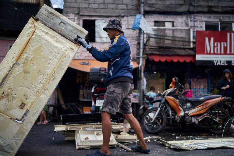 Ils sont des milliers à trier chaque jour les tonnes de déchets électroniques recrachés par la ville ou le port, au milieu du trafic assourdissant des voitures ou dans les minuscules ruelles des barangays*, labyrinthes d’habitations qui s’étendent à l’ombre des gratte-ciels scintillants des quartiers riches. Une activité informelle mais tolérée par l’Etat philippin en l’absence de système de recyclage des déchets efficace. Privés d’espace de travail officiel, les démanteleurs démontent les appareils à même le sol et à mains nues, risquant les coupures aux mains et d’autres blessures moins visibles comme les problèmes cardiovasculaires ou les troubles musculo squelettiques. « Ces travailleurs font face à un cumul d’injustices : en plus de subir la pollution extérieure, les logements insalubres et les inondations qui frappent régulièrement leurs quartiers, ils n’obtiennent aucune reconnaissance officielle malgré la dangerosité de leur activité et n’ont pas accès aux services sociaux », explique Evelyn Pantoja, chargée du programme Santé Environnement de Médecins du Monde à Manille.