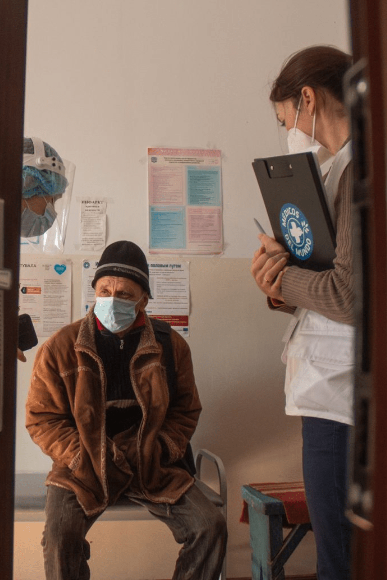 Notre équipe est réduite : un médecin de famille, deux infirmières, un chauffeur et une aide-soignante. Depuis le début de la guerre, aucun d’entre nous n’est parti, ni les membres de l’équipe ni leurs familles. Pendant toutes ces années, nous sommes restés ici : à recevoir des patients, à faire du bénévolat, à nous soutenir les uns les autres.